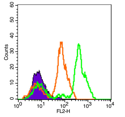 Isotype Control Antibody (orange line): Rabbit IgG-PE.