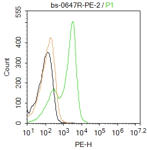 Primary Antibody (green line): Rabbit Anti-CD4 antibody (bs-0647R-PE)